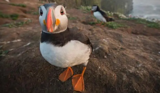 パフィンは、鮮やかな色のくちばしと表情豊かな顔で、まるで漫画から飛び出してきたようです。これらの海鳥は、コミカルな外観とぎこちない動きから「海の道化師」と呼ばれることもあります。