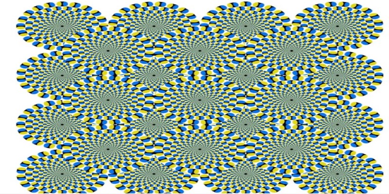 この錯覚では、複雑な模様の静止した円盤が、見ていると回転しているように見えます。デザインと色のコントラストが脳をだまして動きを認識させ、興味をそそり、当惑させる魅力的な視覚効果を生み出します。