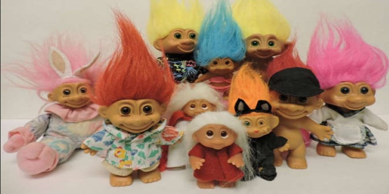 トロール人形は、幸運のトロール人形やダム人形としても知られ、1950年代後半にデンマークの木こりトーマス・ダムによって作られ、 1960年代に大人気となりました。この風変わりな人形は、その乱れた髪と風変わりな表情で、子供も大人も同じように心を掴みました。トロール人形は収集され、取引され、大切にされ、その10年間で最も長く愛されたおもちゃの1つとなりました。
