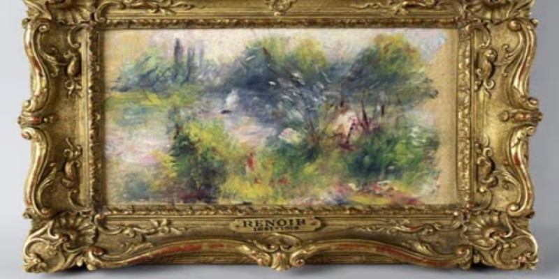 2012年、ある女性がバージニア州のフリーマーケットで7ドルで箱入りの小物を購入した。箱の中には、彼女が気に入ったミニチュア絵画が入っていた。オークションハウスに持ち込んで鑑定したところ、ピエール=オーギュスト・ルノワールのオリジナル絵画「セーヌ川岸の風景」であることが判明した。